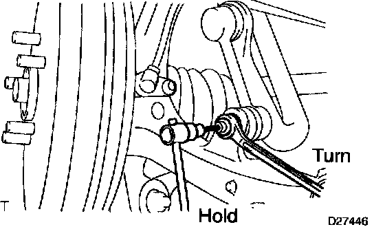 HINT: If the ball joint turns together with the nut, use a hexagon wrench (5 mm) to hold the stud.