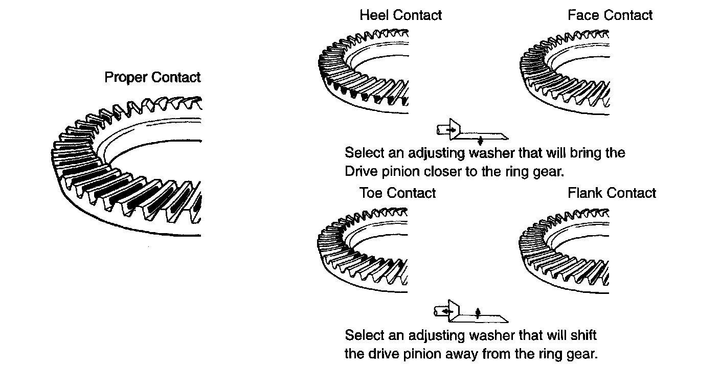 a. Coat 3 or 4 teeth at 4 different positions on the ring gear with red lead.