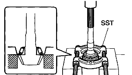 a. Using SST and a press, remove the transfer driven pinion bearing front inner race.
