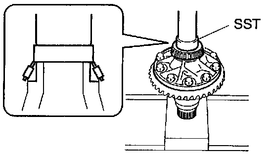 a. Using SST and a press, press the ring gear mounting case bearing RH inner race into the ring gear mounting case.