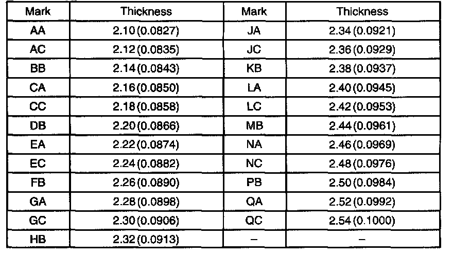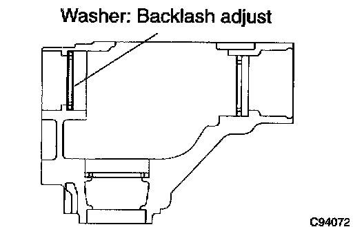 b. If the backlash is not in the range of specified value, select the ring gear mounting case bearing LH side washer from the table and install it to meet the specified value.
