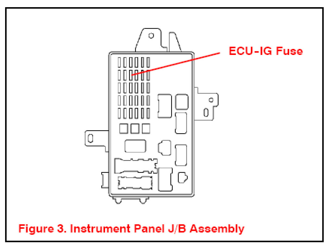3. Reinstall the 10A ECU-IG fuse in the Instrument Panel Junction Block assembly.