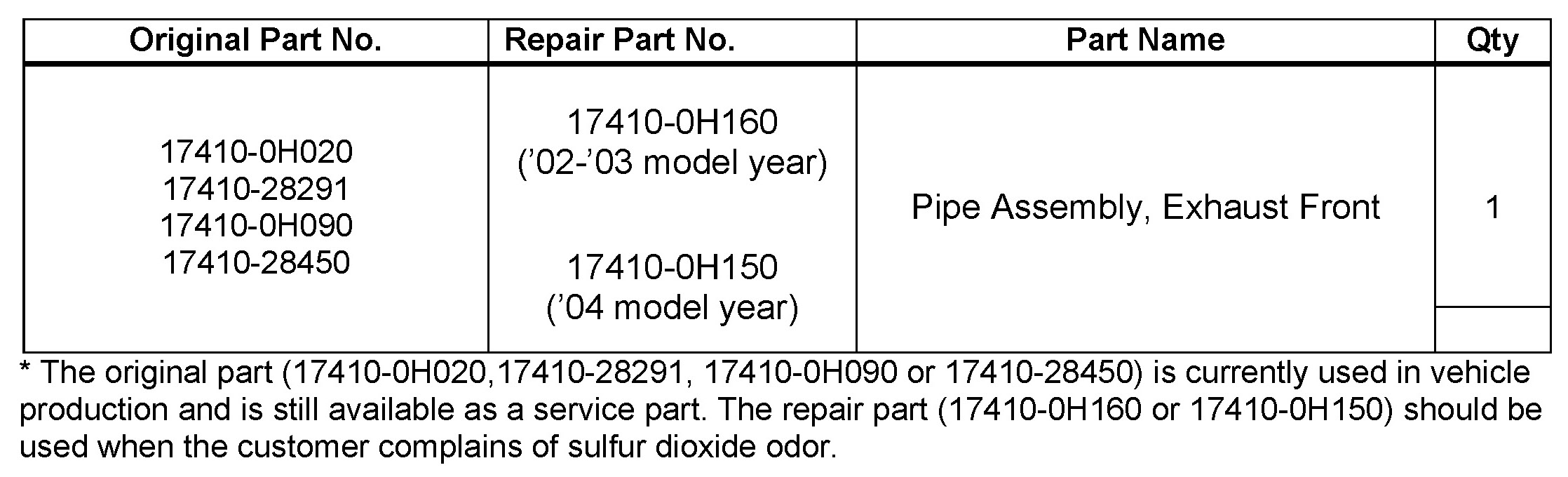- April 26, 2005: The Op Code for "R & R Catalytic Converter Assembly (MTM Only)" has been updated in Warranty Information. Previous versions of this TSB should be discarded.