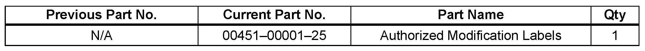 - Authorized Modification Labels may be ordered in packages of 25 from your facing PDC.
