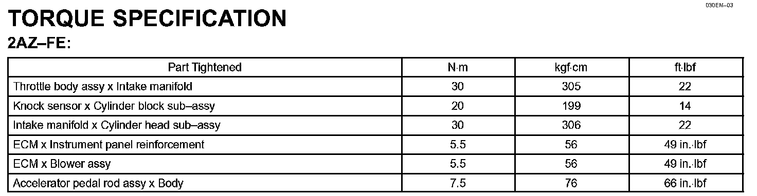 Engine Control System - Torque Specification: