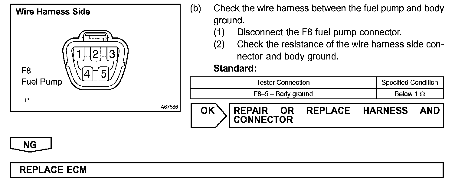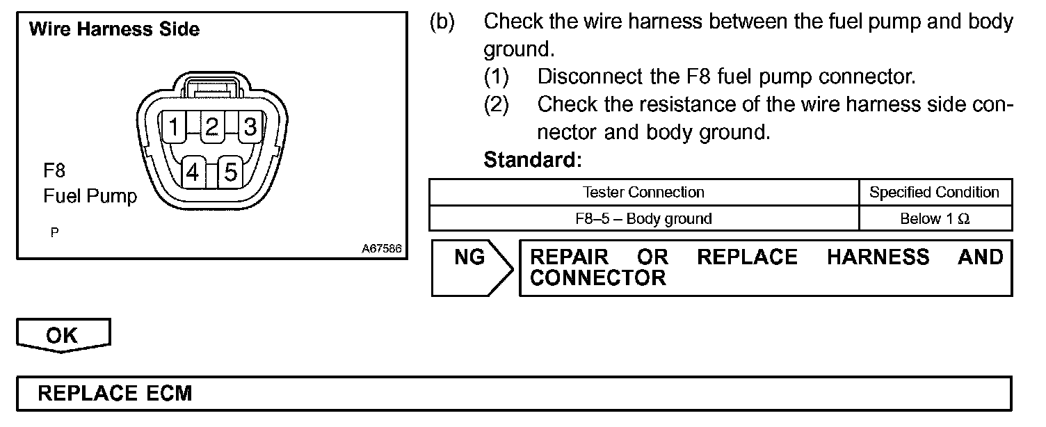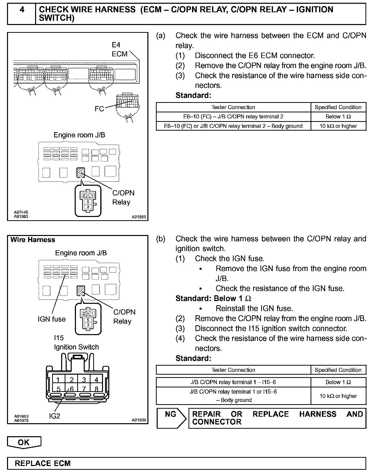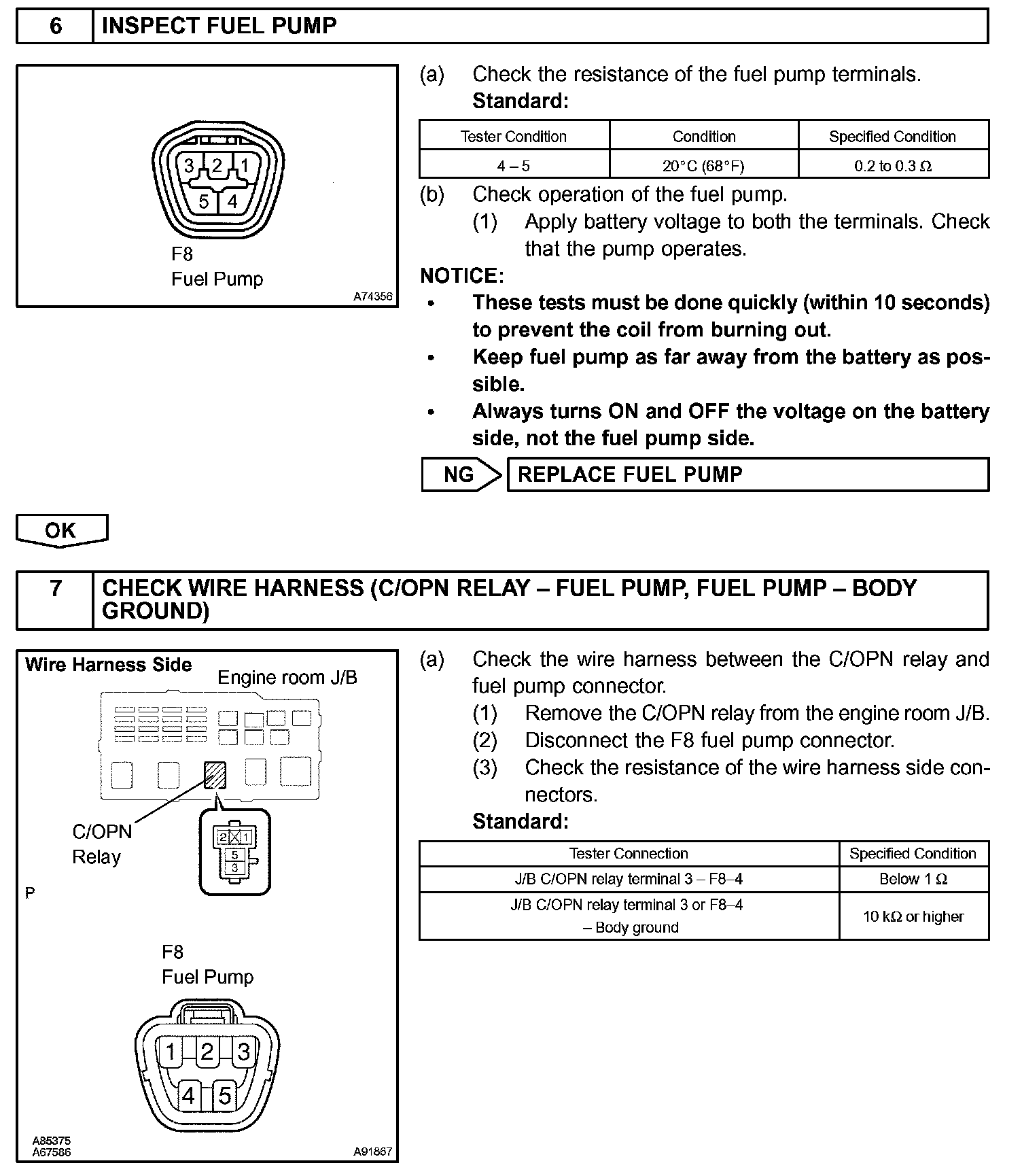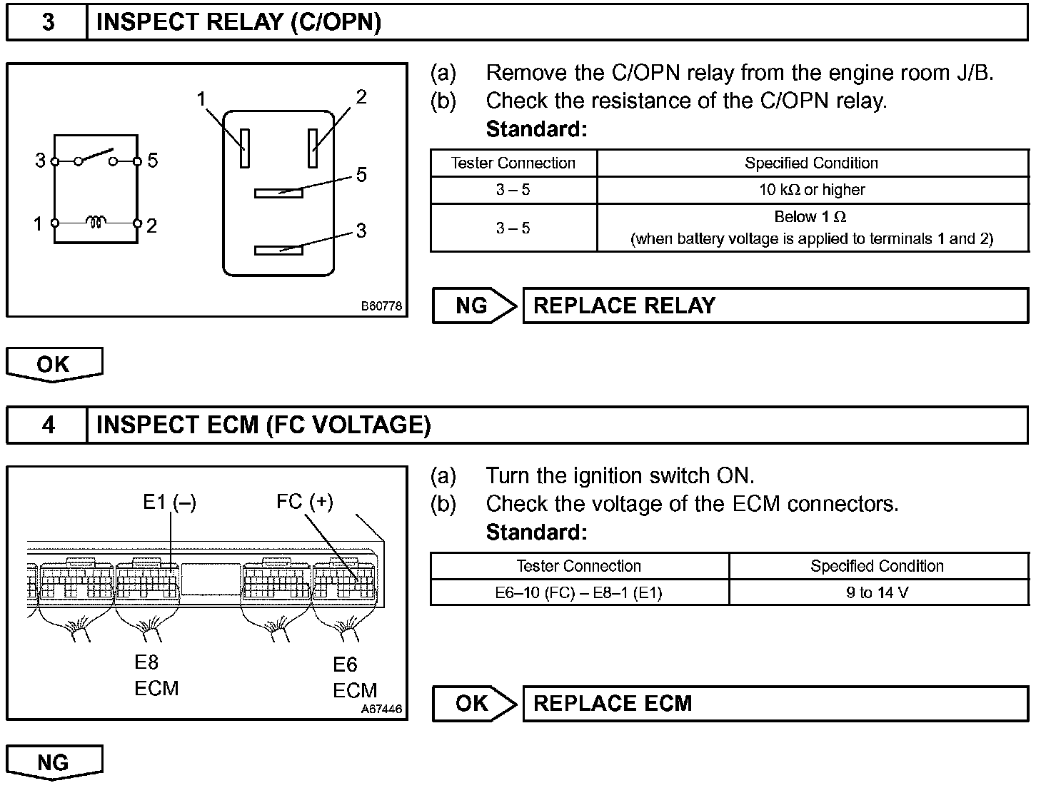 While the NE signal is generated and the engine is running, the ECM keeps Tr ON (C/OPN relay ON) and the fuel pump also keeps operating.