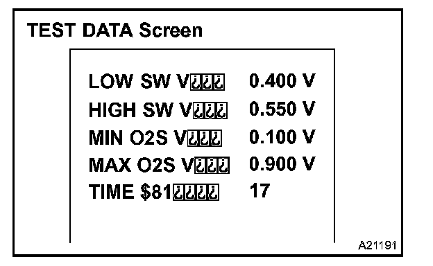 If the TEST DATA value appearing on the scan tool is out of the standard value, the O2S is malfunctioning. If it is within the standard value, the O2S is functioning normally. However, if the value is on the borderline of the standard value, the O2S may malfunction very soon.