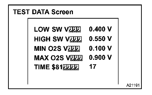 If the TEST DATA value appearing on the scan tool is out of the standard value, the O2S is malfunctioning. If it is within the standard value, the O2S is functioning normally. However, if the value is on the borderline of the standard value, the O2S may malfunction very soon.