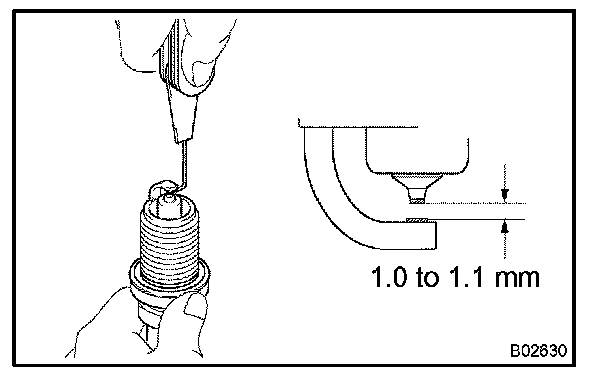 Correct electrode gap for new spark plug: 1.0 to 1.1 mm (0.039 to 0.043 in.)