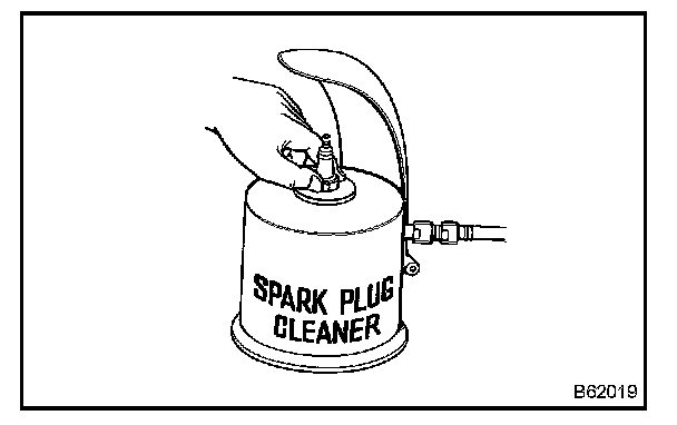 HINT: Use the spark plug cleaner only when the electrode is free of oil. If the electrode has traces of oil, use gasoline to clean off the oil before using the spark plug cleaner.