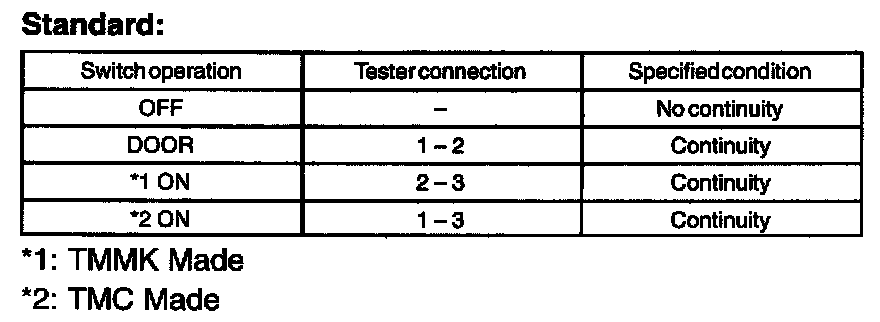 Check that there is continuity between terminals at each switch position as shown in the chart.