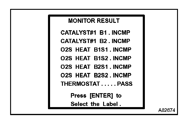 CHECKING MONITOR STATUSHINT: "MONITOR RESULT" indicates normal or malfunction of each component and system when a judgment was made.