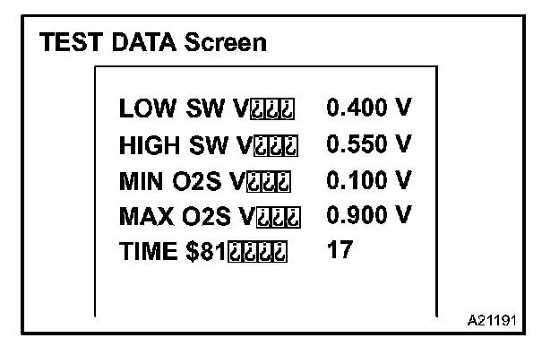 If the TEST DATA value appearing on the scan tool is out of the standard value, the O2S is malfunctioning. If it is within the standard value, the O2S is functioning normally. However, if the value is on the borderline of the standard value, the O2S may malfunction very soon.