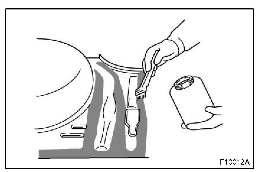 1. To prevent corrosion and protect the body from damage by flying stones, etc., apply anti-chipping paint to the rocker panel, wheel arch areas, balance panel, etc.