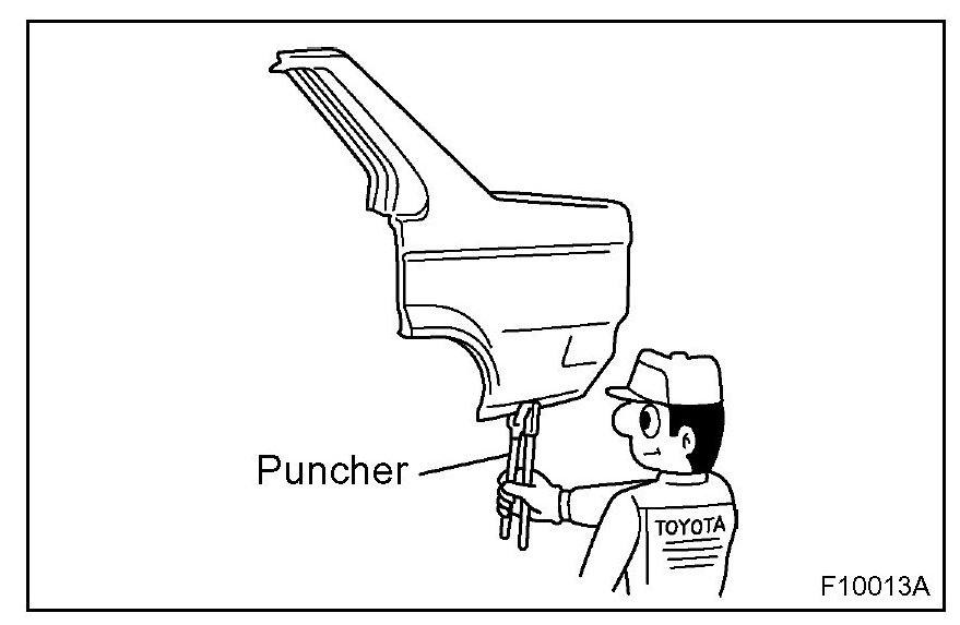 1. For areas where a spot welder cannot be used, use a puncher or drill to make holes for plug welding.