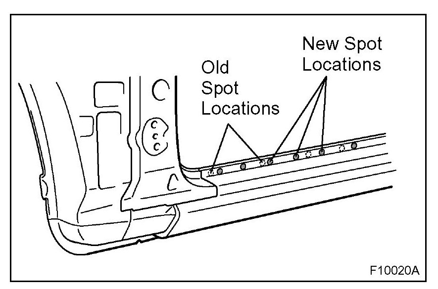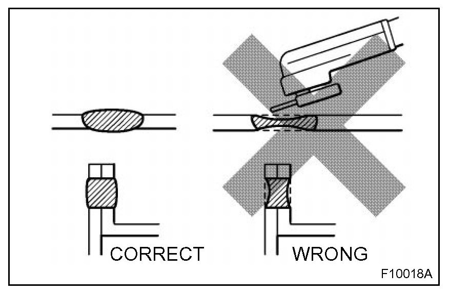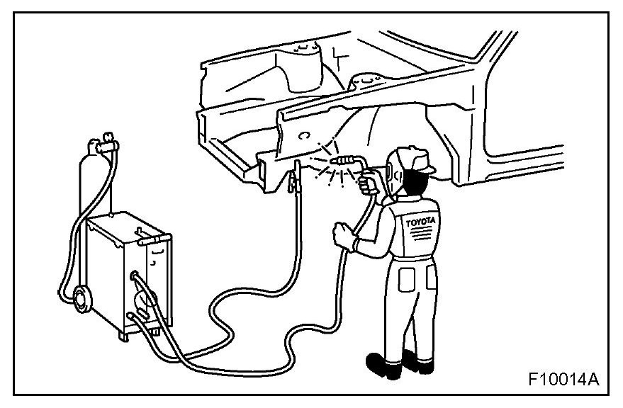 2. Plug welding should be done with a MIG (Metal Inert Gas) welder. Do not gas weld or braze panels at areas other than specified.