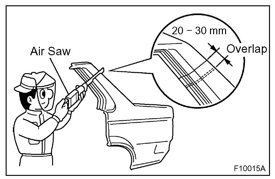 1. For joint areas, rough cut the new parts, leaving 20 - 30 mm (0.79 - 1.18 in.) overlap.