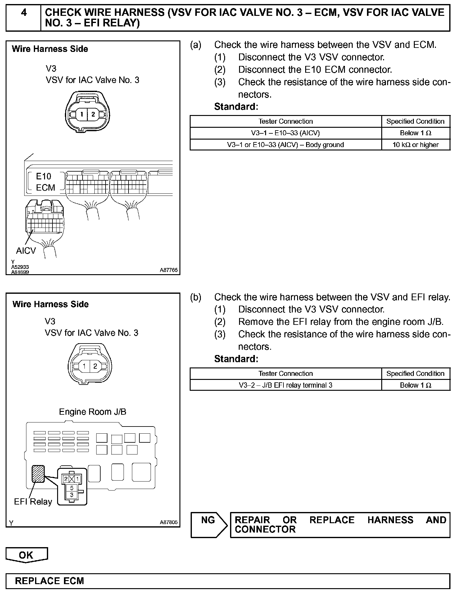 When the engine is operating at low to mid speeds, this system operates the IAC valve to close one of the air cleaner inlets. When the engine speed is more than 3,200 rpm and the opening angle of the throttle valve is more than 30°, the ECM activates the VSV and opens the IAC valve No. 3.