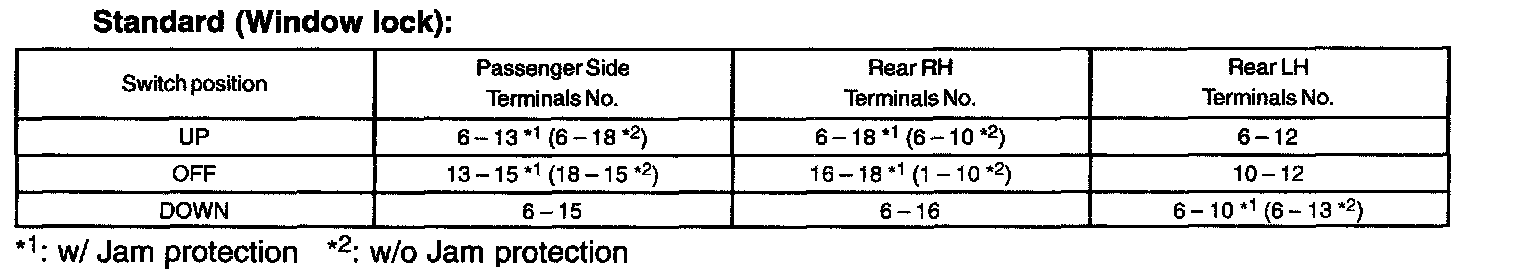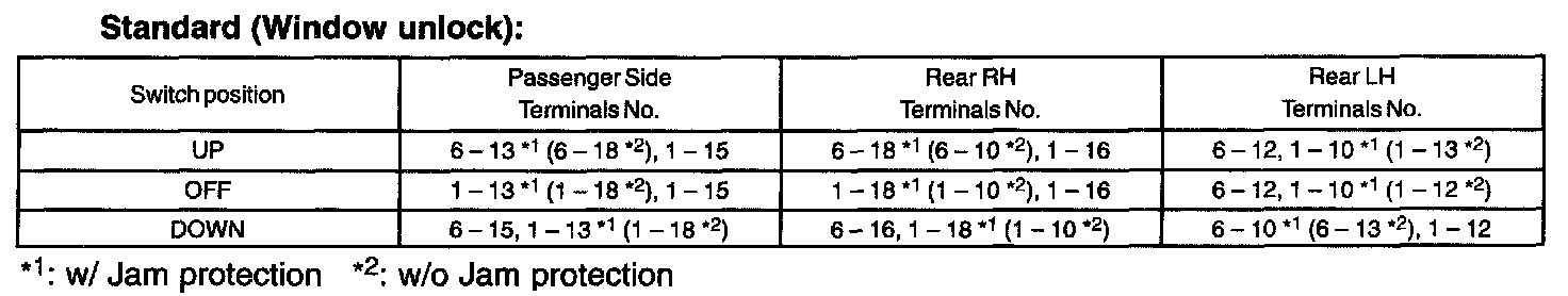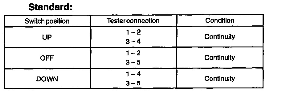 NOTE: Whether the operation is good or bad can be judged by the basic function check, because the continuity cannot be checked by UP/DOWN operation of the front RH side (driver's side) switch.