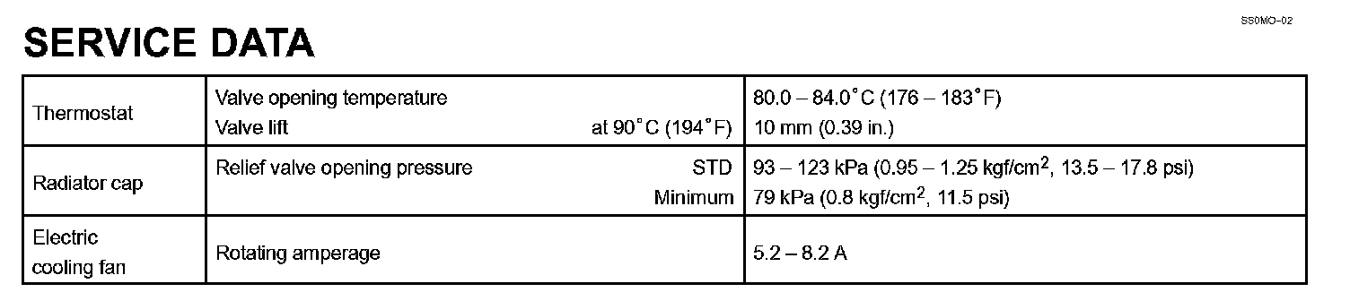 Cooling - Service Data: