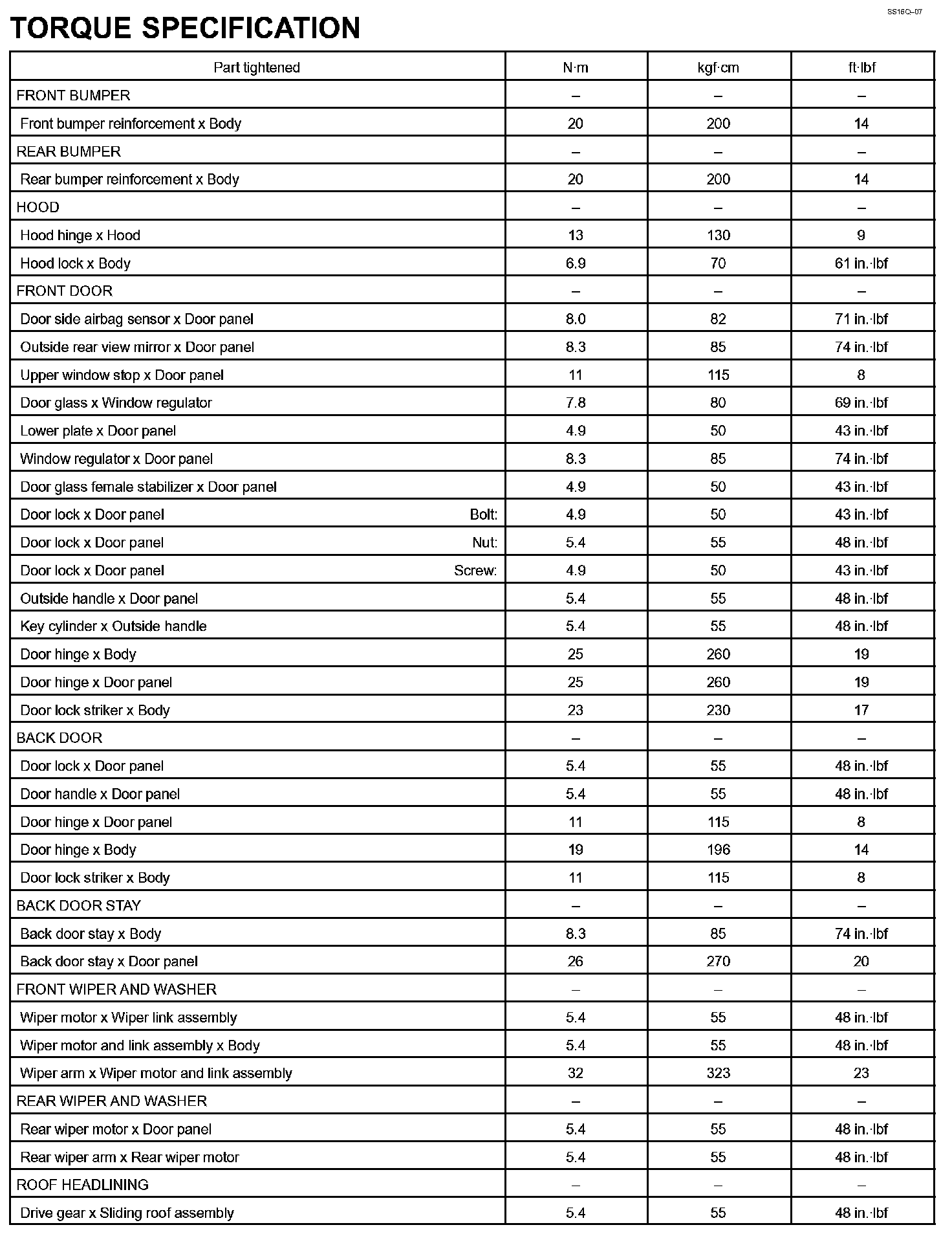 Body - Torque Specification Part 1: