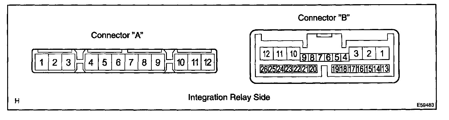 2. Check that the battery voltage (10 - 14 V) generates between terminal B-3 and A-9, then connect the negative (-) lead from the battery to terminal A-5 and A-6.