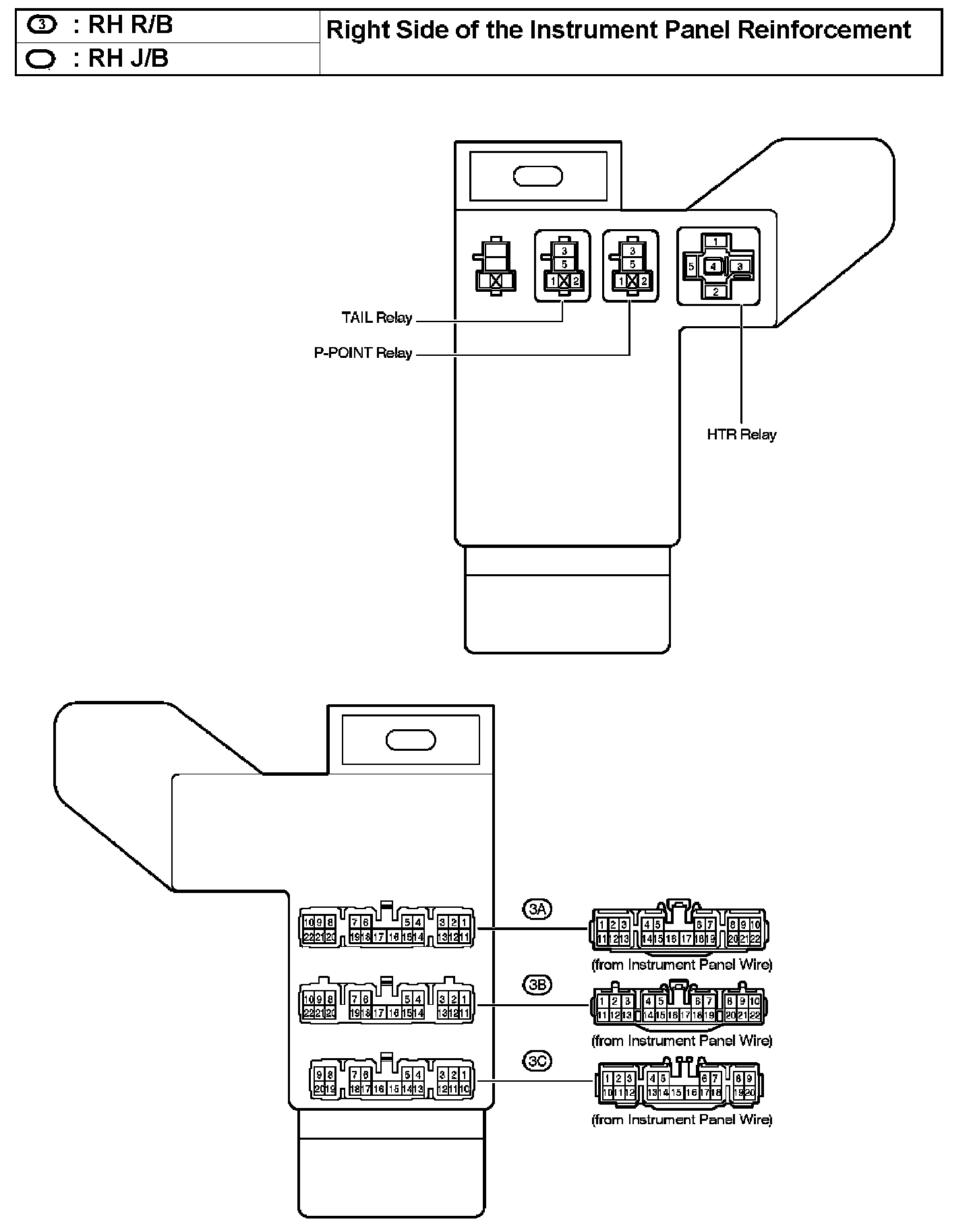 RH R/B, RH J/B - Right Side Of The Instrument Panel Reinforcement: