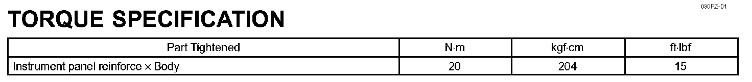 Instrument Panel/Meter - Torque Specification: