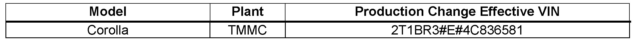 - 2003 - 2004 model year Corolla vehicles equipped with 1ZZ-FE engine produced BEFORE the Production Change Effective VIN shown below.