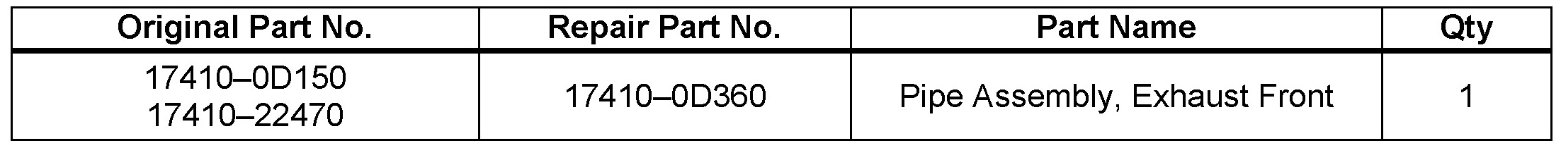 * The original part (17410 - 0D150 or 17410 - 22470) is currently used in vehicle production and is still available as a service part. The repair part (17410 - 0D360) should be used when the customer complains of sulphur dioxide odour and/or M.I.L. "ON" DTC P0420.