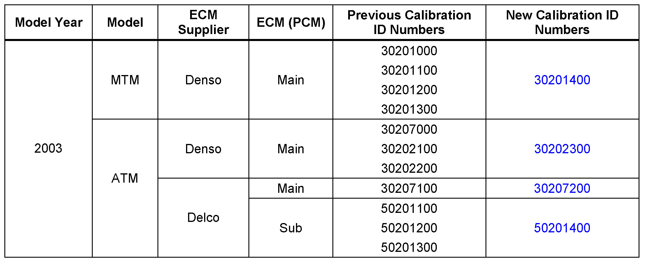 1. 2003 model year Corolla ATM vehicles equipped with Delco ECM (PCM) "P/N 89666 - 02150 are not reprogrammable.