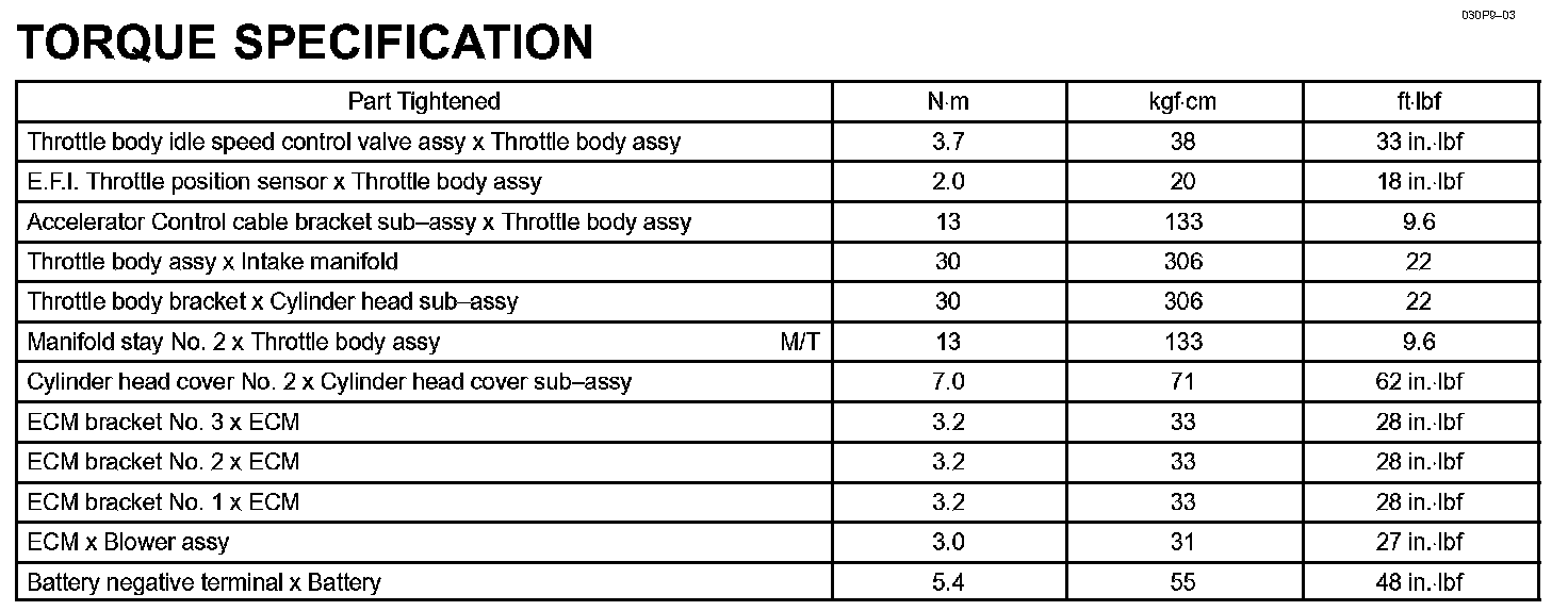 Engine Control System - Torque Specification: