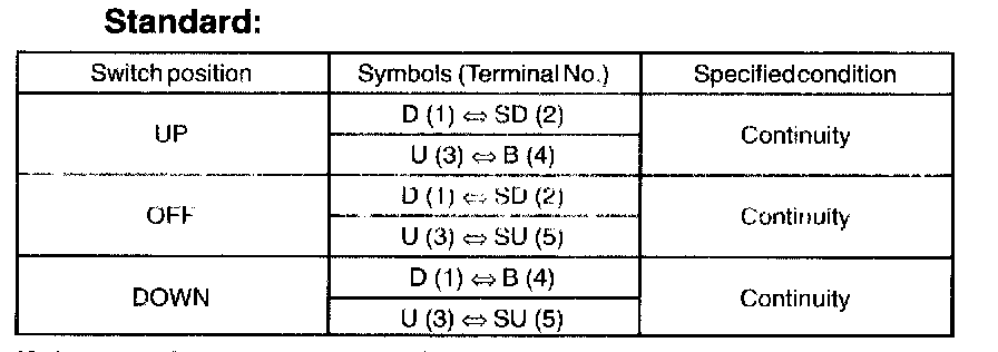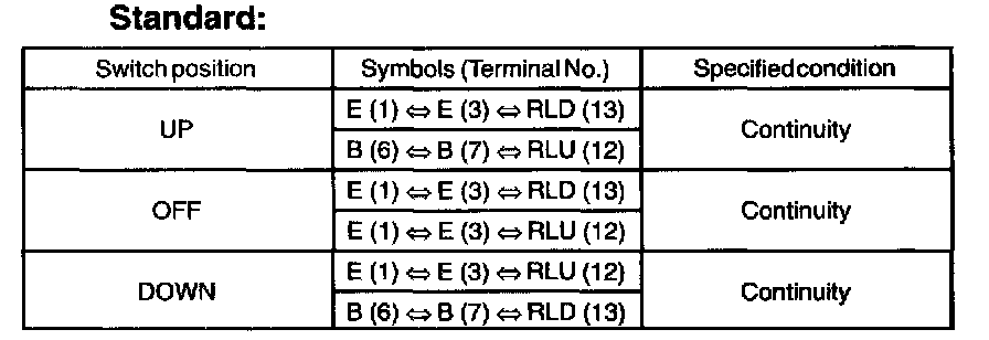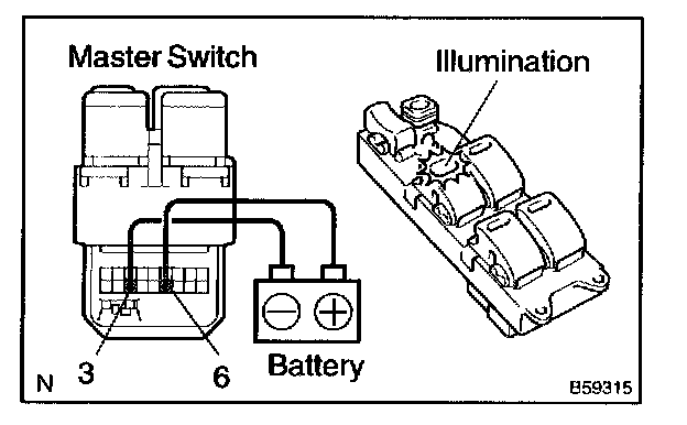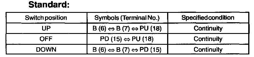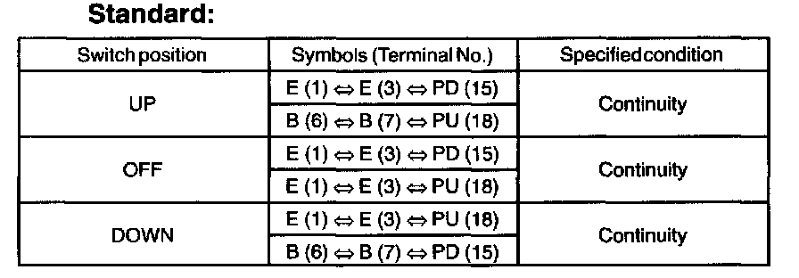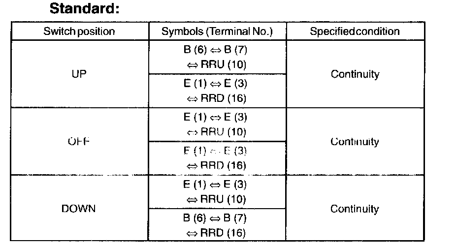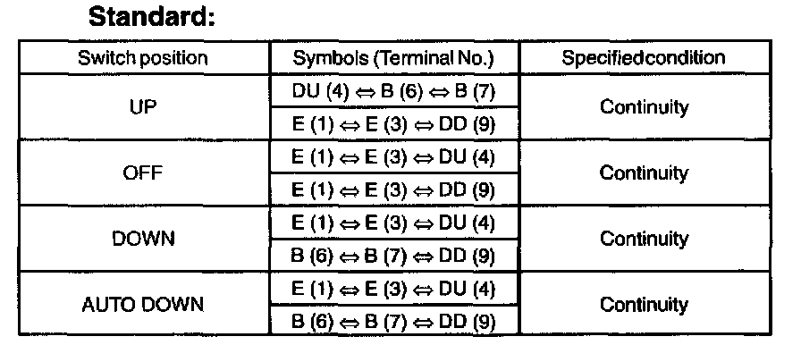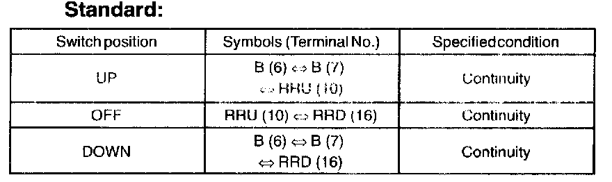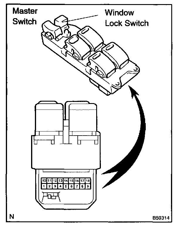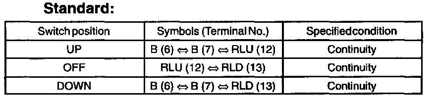 INSPECT POWER WINDOW REGULATOR MASTER SWITCH ASSEMBLYa. Inspect the master switch continuity.