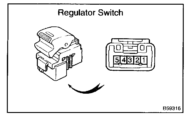 HINT: All the regulator switches (front passenger's, rear left, rear right) should be inspected in the same procedure.