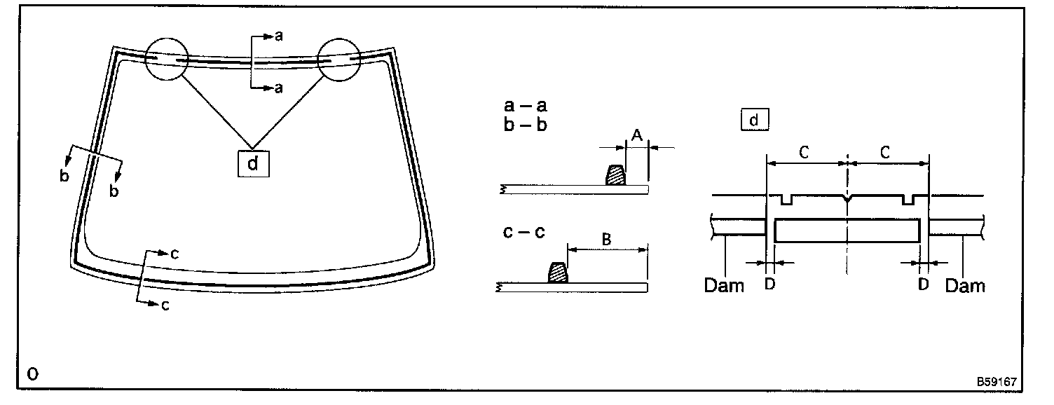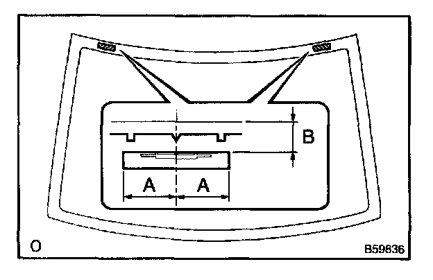 b. Install 2 new windshield glass stoppers No.2 onto the glass as shown in the illustration.