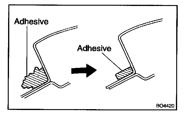 a. Using a scraper, remove the damaged stoppers, dam and adhesive sticking to the glass.