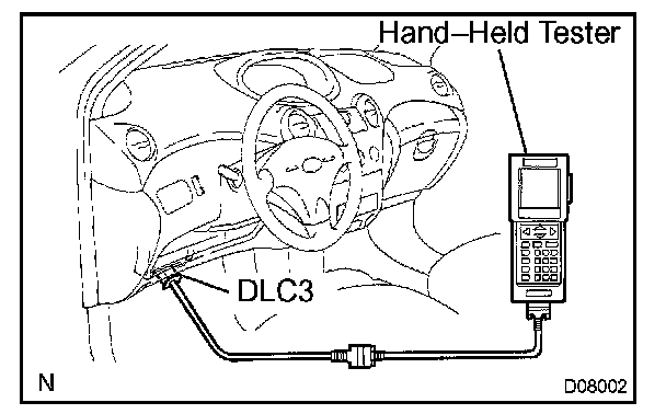 1. Connect the OBD II scan tool or the hand-held tester to the DLC3.