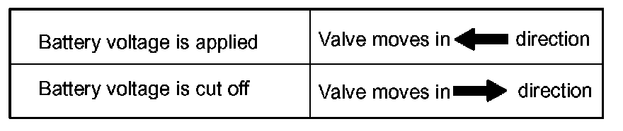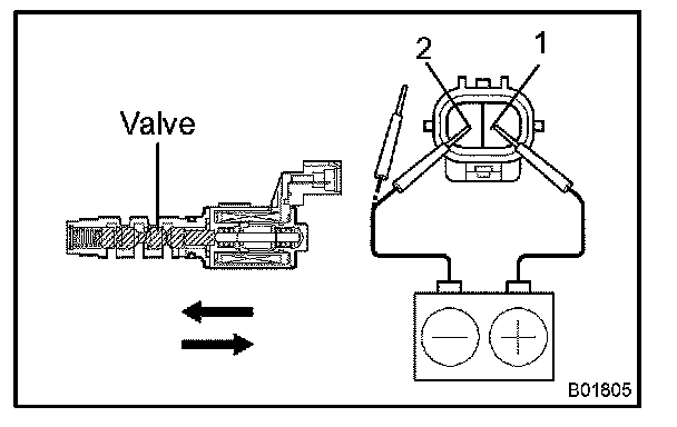 Connect positive (+) lead from the battery to terminal 1 and negative (-) lead to terminal 2, and check the movement of the valve.