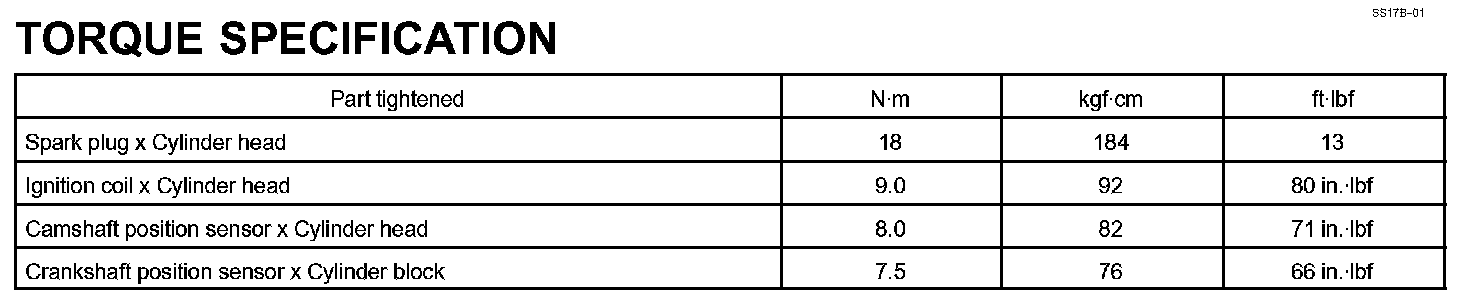 Ignition - Torque Specification: