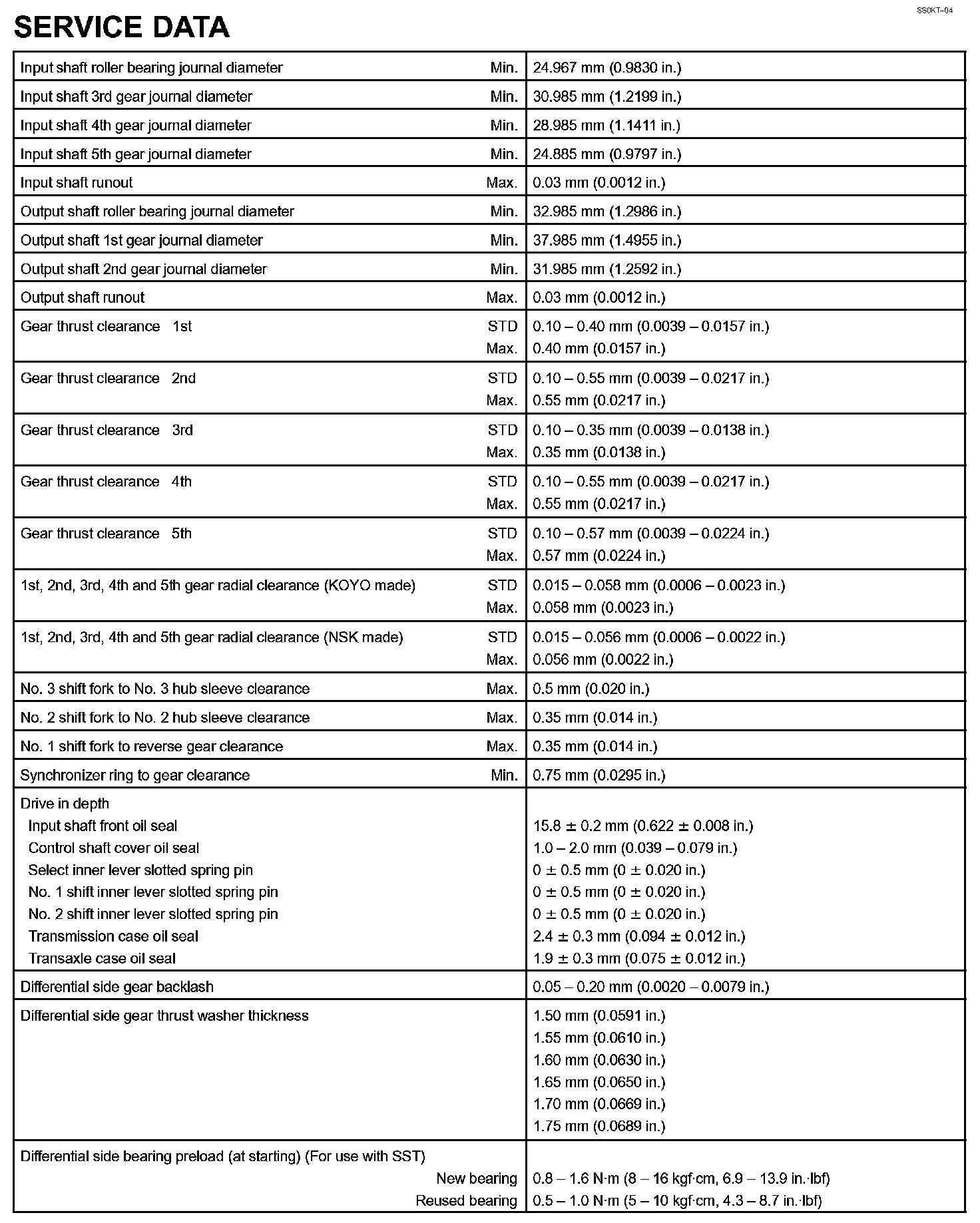 Manual Transaxle - Service Data Part 2: