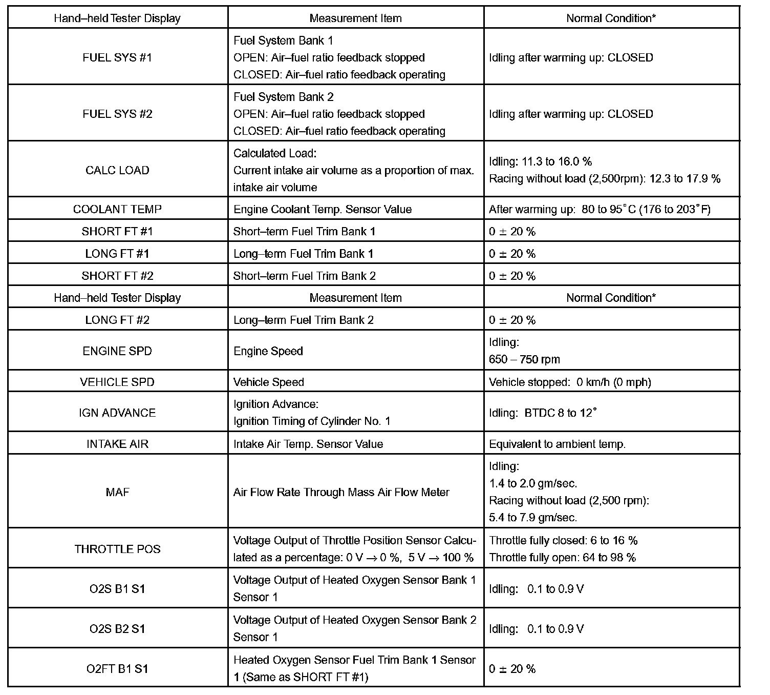 DATA LISTHINT: Using the hand-held tester's DATA LIST allows switch, sensor, actuator and other item values to be read without removing any parts. Reading the DATA LIST early in troubleshooting is one way to save time.