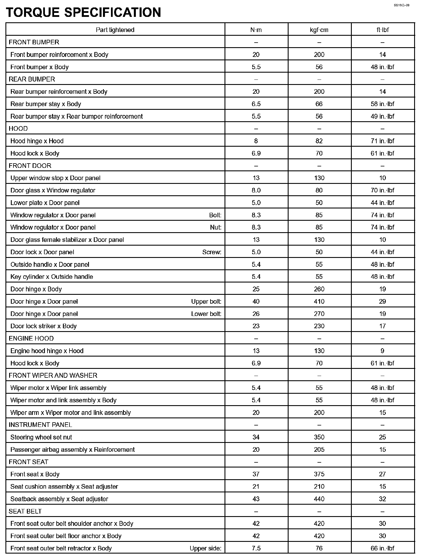 Body - Torque Specification Part 2: