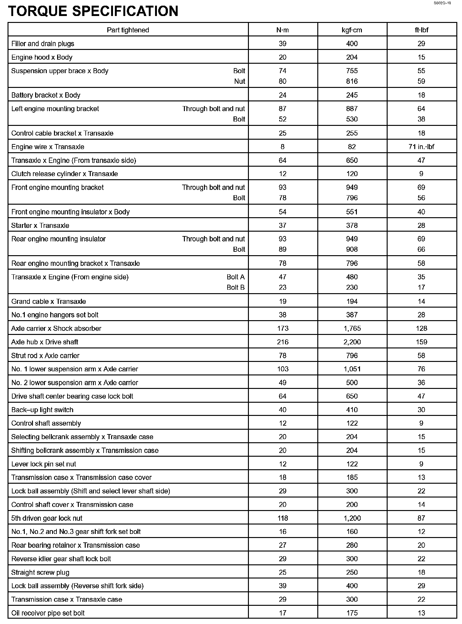Manual Transaxle (C56) - Torque Specification Part 1: