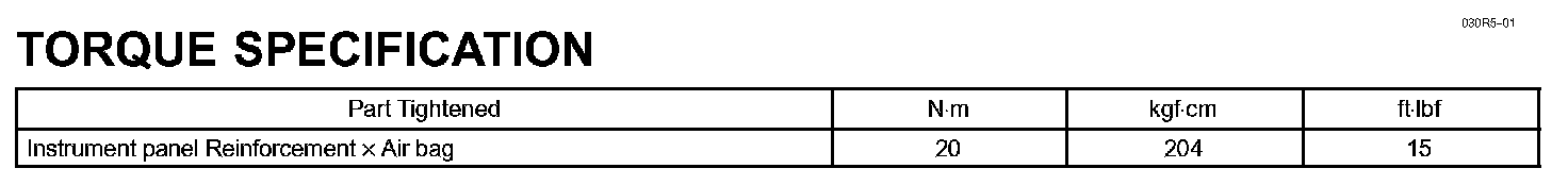 Instrument Panel/Meter - Torque Specification: