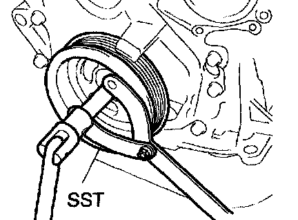 a. Using SST, remove the pulley bolt.