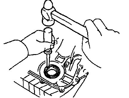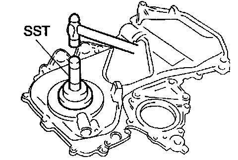 b. Using SST, tap in the oil seal until its surface is flush with the timing chain cover edge.