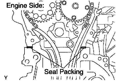b. Apply seal packing to 2 locations as shown in the illustration.