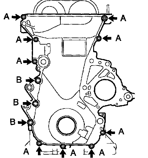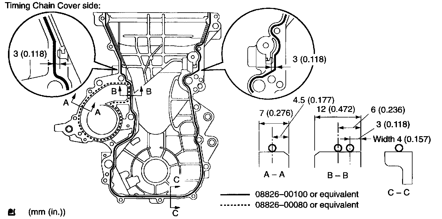NOTICE: Be careful no tot damage the contact surfaces of the timing chain cover, cylinder head and cylinder block.