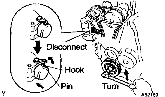 NOTICE: When installing the tensioner, set the hook again if the hook release the plunger.