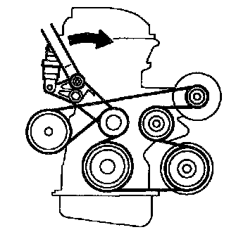 a. Turn the drive belt tensioner clockwise to relieve tension on the belt, and then remove the belt.